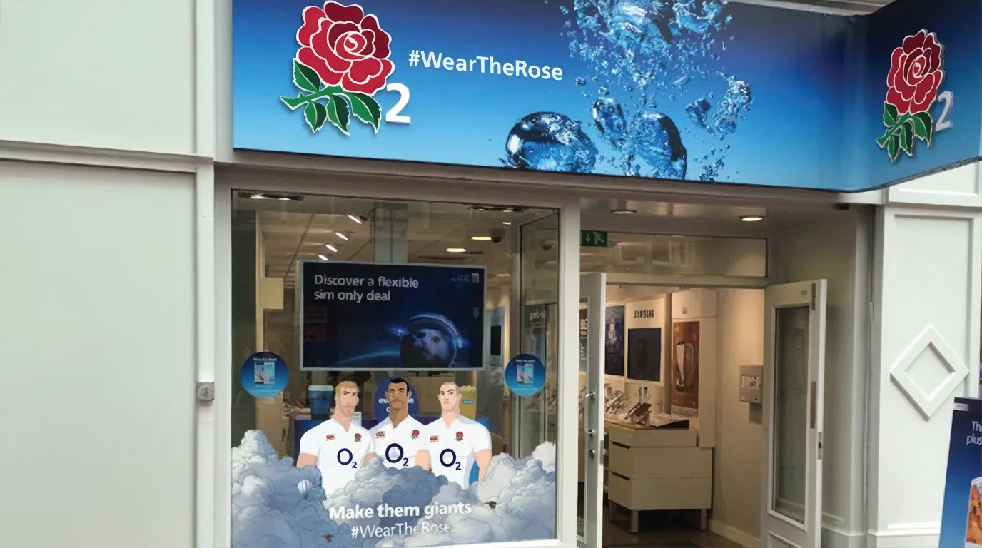 Keeping in line with their strong brand creating in-store POS that is engaging & informative. Working on a number of successful O2 campaigns & bringing them to life in the in store environment. Such as new handset releases, sale & ‘Be more dog’ ‘Follow the Rabbit’. Also part of the team to work on the launch of the the most "significant" campaign of its 20-year England Rugby sponsorship. Calling on fans to 'Wear the Rose' to show their loyalty ahead of the Six Nations kick off. Including a large projection – which the was transformed into a canvas for a projection light show, where fans’ tweets & messages of support were projected onto the O2 Arena. This was a world record with 68 projectors and over 144 moving headlight fixtures. There was many areas of the store which were transformed with the design of Pin badges, POS, in store vinyls and also changing the store front.
