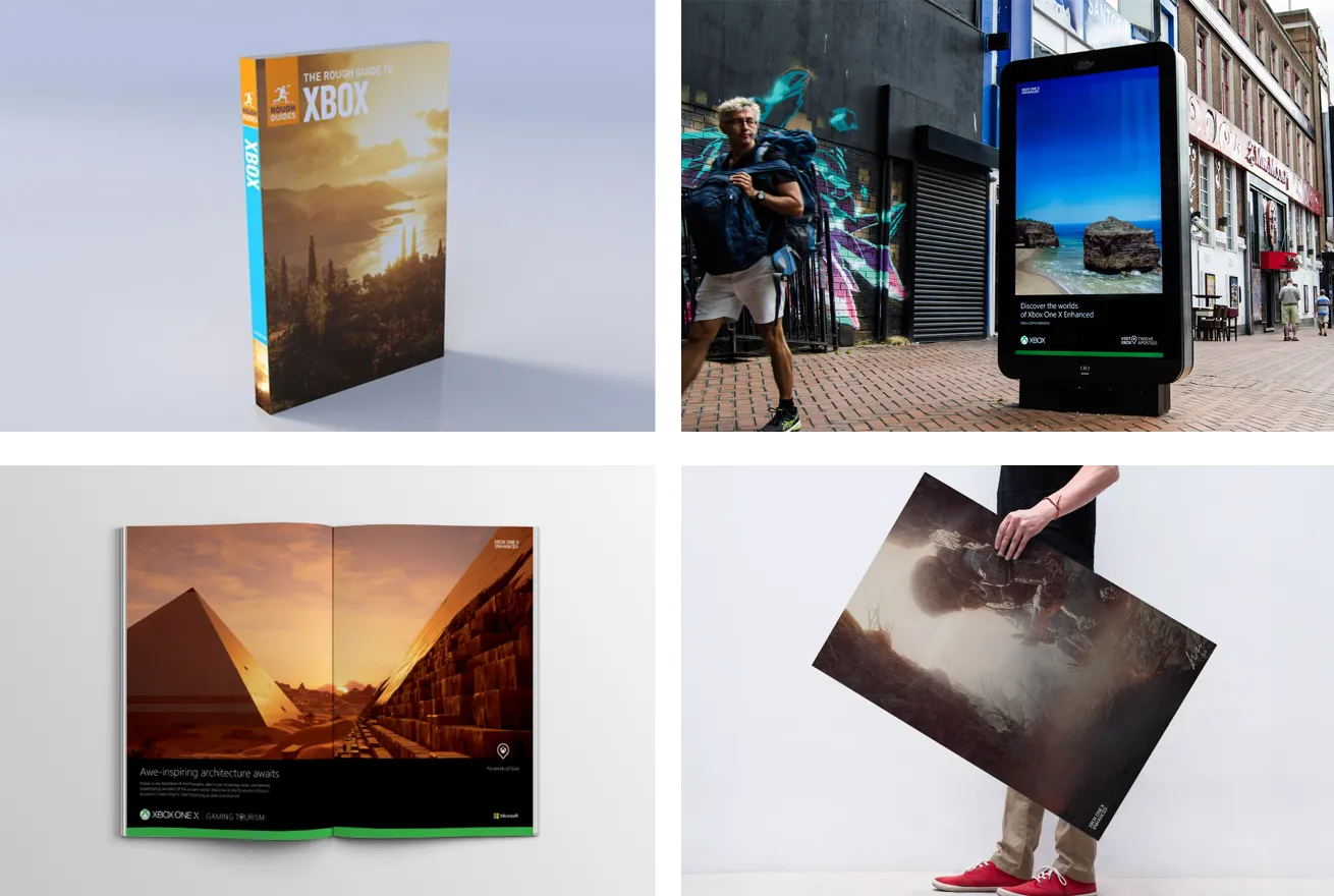 To target a new audience, we created a new reason to buy games. Not just to play but to visit. The centrepiece was The Rough Guide to Xbox – the first travel guide for virtual worlds. Xbox transformed into a travel brand, with a stand at the UK’s biggest travel expo, tourist board-style ads, in-game guided tours, and even game bundles re-framed as package holidays. That was all before Covid. But when the pandemic hit, it cemented this new way to travel.
